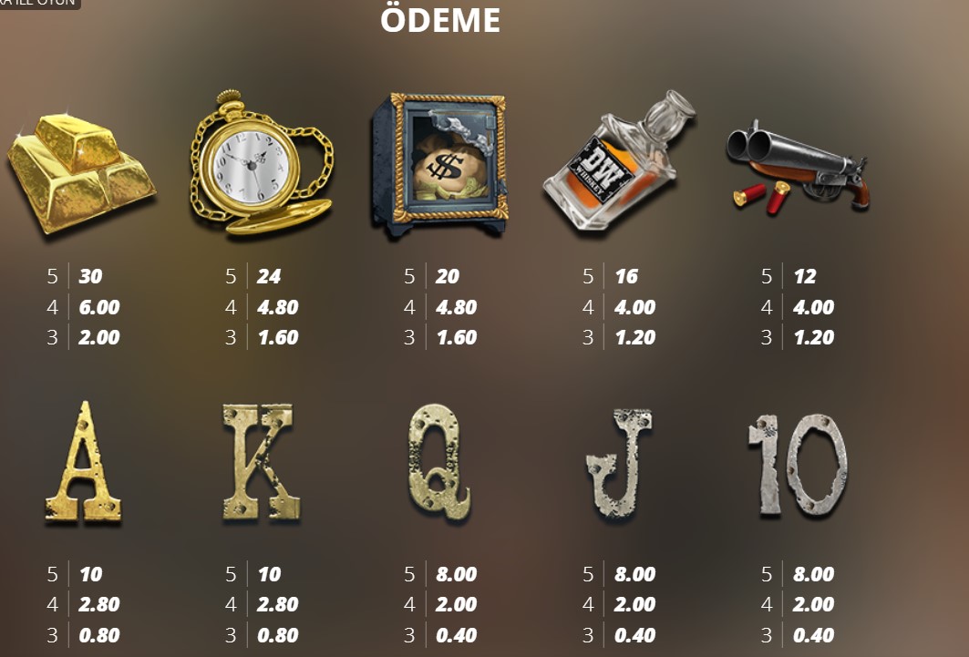 Dead Wood Ödeme başlıklı bölümümüzde popüler slot oyunları arasında yer alan dead wood oyununun ödeme tablosu incelemesini sunacağız.