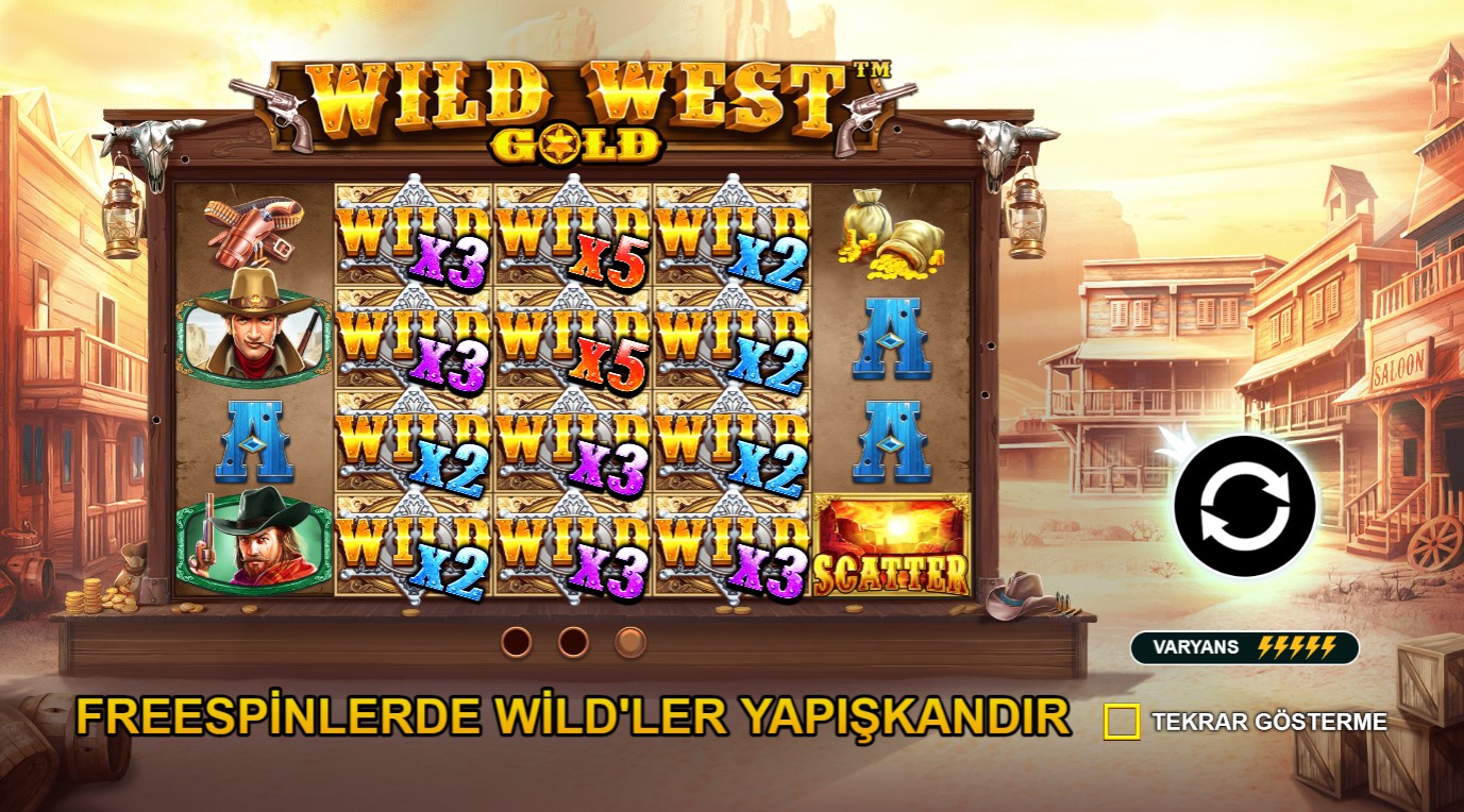 Wild West Gold Free Spin Satın Alma başlıklı yazımızda pragmatic play ‘in en çok oynanan casino oyunları arasında yer alan wild west gold oyunundan nasıl free spin alma işlemi gerçekleştirebileceğinizden bahsedeceğiz. Wild West Gold oyununda free spin bölümüne geçmek için öncelikle 3 adet scatter sembolünün bir arada döndürme işleminizde denk gelmesi gerekmektedir. Dilerseniz bonus oyununu beklemeden sol köşede yer alan free spin satın al butonuna tıklayarak wild west gold oyununda free spin satın alma işlemi gerçekleştirebilirsiniz. Wild west gold ‘da minimum 100 TL ‘te free spin alma işlemi gerçekleştirebilirsiniz. Free spin oyununda sembol üzerinde gelen rozet işaretleri free spin oyun tur sayısını arttırmaktadır.